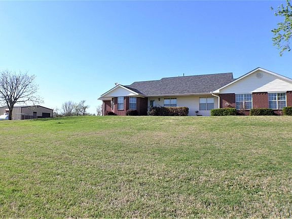 Quiet-Private Country Setting....Immaculate Brick Home Overlooks the Pond .....Well-Designed Gourmet Kitchen with Endless Cabinet Space, Granite Counter Tops, Unique Natural Stone Back Splash, Built-In Oven, Microwave, Gas Cooktop, Dishwasher and Trash Compactor....Large Comfortable Family Room is next to the Kitchen....Primary Bedroom with Private Bath, Walk-In-Shower and Jetted Tub...Attached 2 Car Garage....Shop 30'X42' (mol) with 2 Overhead Electric Doors, Large Storm Safe Room....Steel Framed Barn 52'X72' (mol) with Electric and Water....Cattle Pens/ Working Corrals....Rural Water and Well Water......26.78 Acres (mol) Property Is Located in South Central Oklahoma, Approximately 10 minutes from downtown Sulphur.
