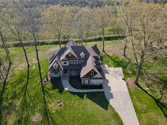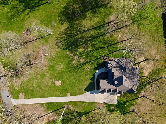 Luxury Living in a peaceful setting. Watch the deer and turkey from the back porch of the French Country home built in 2018. Sophisticated, light-filled open floor plan with stunning ceiling features. 20 foot wood coffered ceilings in grand room, vaulted ceiling with large beams and barn wood in hearth room. 10 foot ceiling in remaining first level and 9 foot on the second level. Cherry paneled office with French doors. Stunning gourmet kitchen with custom cabinets and Kitchen Aid appliances. Four bedrooms, Four and 1/2 bathrooms and 3 bonus rooms. All closets have custom shelving. Hardwood, tile, and bricks floors throughout. Three fireplaces provide and ambiance of coziness. The Grand room has a gas fireplace with brick hearth surrounded by built-in cabinetry, Gas fireplace with cherry mantel in the office and a wood burning fireplace with rock hearth in the family room. Enjoy watching the sunrise and sunset from one of the covered porches.