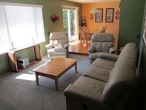 Hardwood floors and wall to wall carpet. Large yard with front and back lawns. Covered patio. Beautiful concrete stamped driveway and walkway.