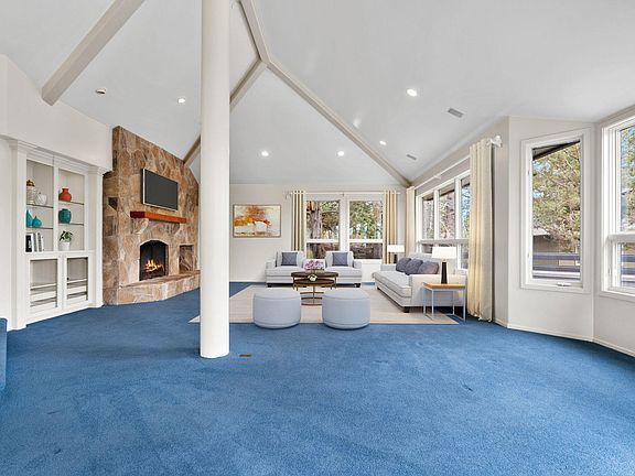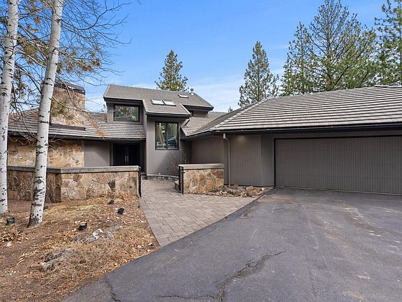 Located in Awbrey Butte, nestled among mature trees in one of Bend's most sought-after communities, this nearly 3,000 sq. ft. home offers the perfect balance of privacy & convenience. Enter to a bright & inviting living room with soaring vaulted ceilings, anchored by a real wood-burning fireplace w/ a gas starter. A well-equipped kitchen features a Viking six-burner gas cooktop, farmhouse sink, ample cabinetry, & real oak wood floors—a perfect space for cooking & gathering. The primary suite boasts coffered ceilings plus a en-suite bathroom with dual vanities, a jetted tub, & large shower. An additional main-level bedroom connects to a second full bathroom. Upstairs, find two more bedrooms & a third full bath, with one bedroom offering views mountain views. Step outside to a generous deck with a built-in BBQ/ bar, ideal for entertaining while enjoying the peaceful, private surroundings. Plus, a triple-car garage & moderately sloping driveway provide ample parking & storage space.