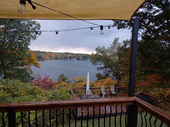 Right away you'll notice the exquisite landscaping, herringbone brickwork, and the front porch of your dreams. Tall 9' ceilings and gorgeous hardwood floors throughout the main floor. Bright and spacious living room and formal dining room. The kitchen boasts a beautiful new backsplash, tons of cabinet space, a breakfast bar, an eating area, and bay windows showcasing the amazing view. A secondary living space sits off the kitchen with a wood-burning fireplace and slider doors leading out to one of three of the decks. Continuing inside, is the main floor laundry, 2 great size bedrooms, 2 bathrooms, and the primary suite, with a large walk-in closet, spa tub, walk-in shower, and gorgeous views of the lake from it all.