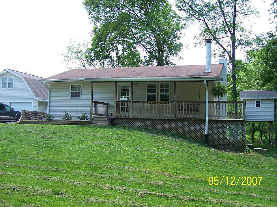 1 YR HOME WARRANTY. Very nice home between Bedford and Bloomington, and less than 10 minutes from Lake Monroe. Full finished walk-out basement with woodstove in family room, new carpet, drywall, and paint. New septic pump. Eat-in kitchen with appliances. Fireplace in living room. Wrap-around porch. Rear deck with storage building. Easy access attic storage above garage.