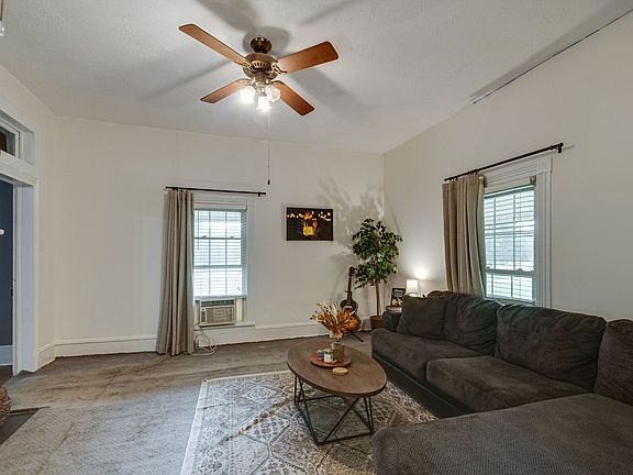Welcome to this charming older home with the perfect wrap-around porch and treed yard. There are three bedrooms and two full bathrooms inside, along with tons of character that one would expect from a home of this era. Tall ceilings, fireplaces and rustic wood floors are some of the things that are sure to catch your eye. All of this is sitting on almost two acres, so there's plenty of outdoor space! *Added bonus* Seller will be leaving all of the appliances with the home and there’s high speed internet! Be sure to schedule an appointment today!