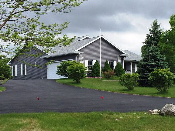 Well maintained home on 2+ acres. Spacious rooms with lots of natural light in excellent condition. Family room with vaulted ceiling, gas fireplace and knotty pine walls and wainscoting, a perfect place to relax. Master Suite with private bath, hardwood flooring and walk-in closet. Large deck off and covered front porch. Everything you need for one floor living. 53x30 outbuilding with separate heated workshop and 17 ft door. New roof 2011. Full basement, partially finished and plumbed for a bathroom, 3 zoned heating system. Beautiful country views. Home is currently used as a family vacation home.