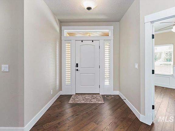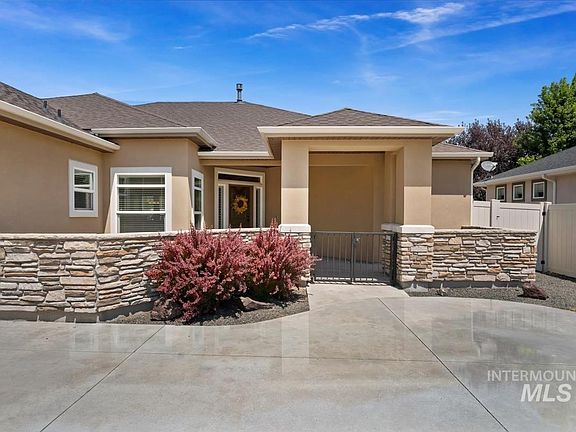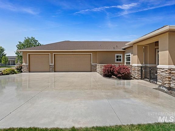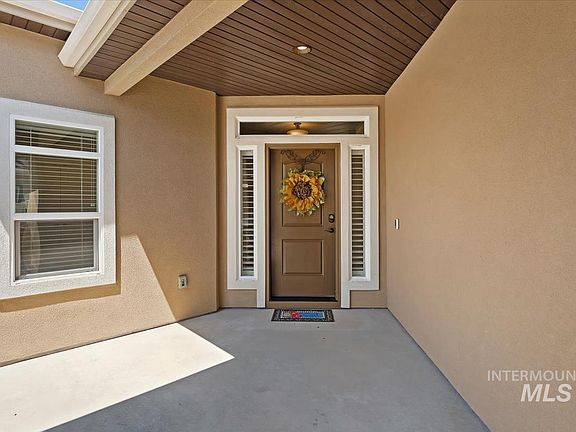 NOW AVAILABLE! This spacious 2,532 sq ft single-level floor plan, featuring 3 bedrooms, 2.5 baths, and an optional 4th bedroom or office w/closet, is move-in ready. The home boasts extensive engineered flooring, granite, tile, fresh carpet, and custom trim work. Enjoy a sizable kitchen island, SS Bosch appliances, and a walk-in pantry. The great room is enhanced by a stone-surrounded gas fireplace and ceiling beams. An oversized garage (960 sq ft), a covered patio with ceiling fans, lighting, and a BBQ gas hookup add to the appeal. NO BACK NEIGHBORS and located in the desirable Sawtooth Creek subdivision, this home offers convenient access to shopping, dining, coffee shops, parks, and schools.