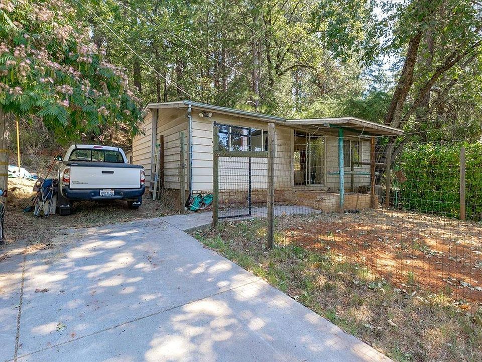 This 1 bed/1 bath cottage is tucked into a rural community off Old Downieville Highway, surrounded by beautiful old redwoods, and ready for your personal stamp. The open concept floor plan includes a combined kitchen/dining/living area with pellet stove to heat the space, separate bedroom and bath. The large lot includes plenty of room in back for an addition. Owned propane and fenced front yard. Extra long driveway includes space for an RV or multiple vehicles. Great opportunity for a first-time owner or handyman!