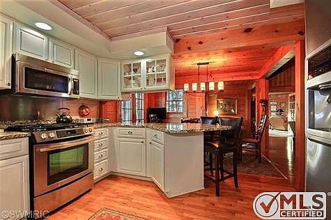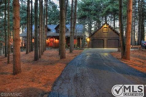 Call Nancy Stulberg 269-274-2574 to see this IMPRESSIVE Town & Country Cedar Log home nestled among tall pines, w/a stocked fish pond [separate well & electric]. Over 21 acres, a true sportsman/nature lovers dream! Sit on the covered front porch or on the wrap around open decks [w/decorator pond/waterfall] & watch the wildlife, turkeys, deer etc. roam. Inside nothing is left undone. Open concept on main floor & lower walkout levels, w/room for everyone! Breathtaking fieldstone fireplace greats you as you enter the foyer. Beamed ceilings, wood floors throughout. Gourmet designer kitchen will be the hearth of this home. Main floor master w/spa like bath. California designed master closet. 2 large upstairs bedrooms w/shared bath. Lower level offers a 3rd family rm w/wall of shelves [great TV viewing area] + a large den/study that could easily be a 4th bedroom, w/walk-in closet & 3rd bath w/steam shower. 2nd full kitchen w/laundry round out this area. delightful home inside & out! Brokered And Advertised By: Rosemary Davis, REALTORS Listing Agent: Nancy A Stulberg