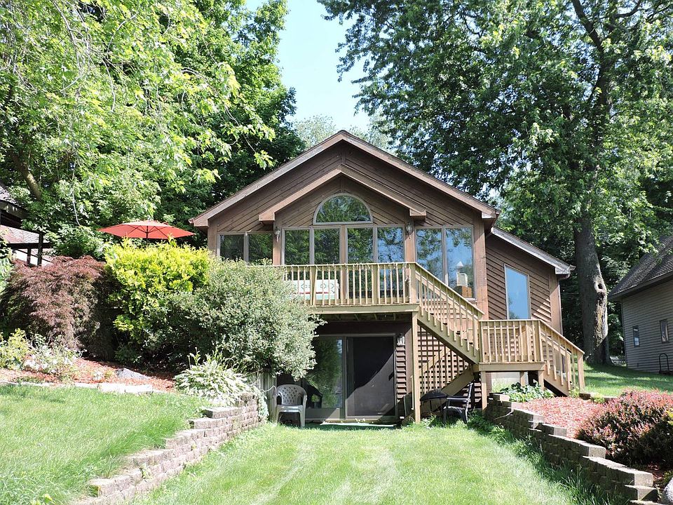 Here's a nice home on this 246 acre all-sport lake; lake has an island, municipal sewer, and is nearby to Indiana, the Univ. of Notre Dame, and easy access to I-80/90; clear spring fed water and has canal to smaller Lewis Lake; level site; nice view of lake; vaulted ceiling great room and more.