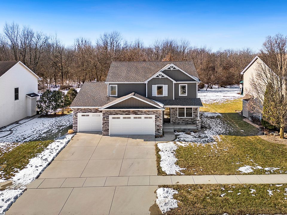 Newer Constructed, 5Bdrm/3.5Bth, 2-Sty Home features TONS of Quality Upgrades, FINISHED BASEMENT, & Covered Trek Deck, which overlooks PEACEFUL, WOODED BACKDROP in Lowell's Oaks of Cedar Creek Subdivision! Sleek Exterior w/ Covered Front Porch WELCOMES YOU into Home boasting White Craftsman Interior Doors, Wainscoting, & Wide-Plank, Hand-scraped, HARDWOOD FLOORING, which flows throughout Main Floor Living Space. OPEN CONCEPT LAYOUT w/ Nice-size Family Rm overlooking Eat-in Kitchen w/ Center Island, STAINLESS STEEL Applcs, Quality Cabinetry w/ Crown Molding, & Recessed Lighting. 4 Upper-Level Bedrooms include Primary Suite w/ Vaulted Ceiling, Recessed Lighting, C-Fan, W-I Closet, & Private Ensuite. Basement finished w/ MODERN FLAIRE offers MORE LIVING SPACE including Large Recreation Room, Possible 5th Bedroom, 4th Bath, & Storage Room. Large Shed w/ Overhang, Full-House Generator, Heated, 3.5 Car Garage, & Outside OASIS w/ NATURE VIEWS, makes this THE HOME YOU DON'T WANT TO MISS!