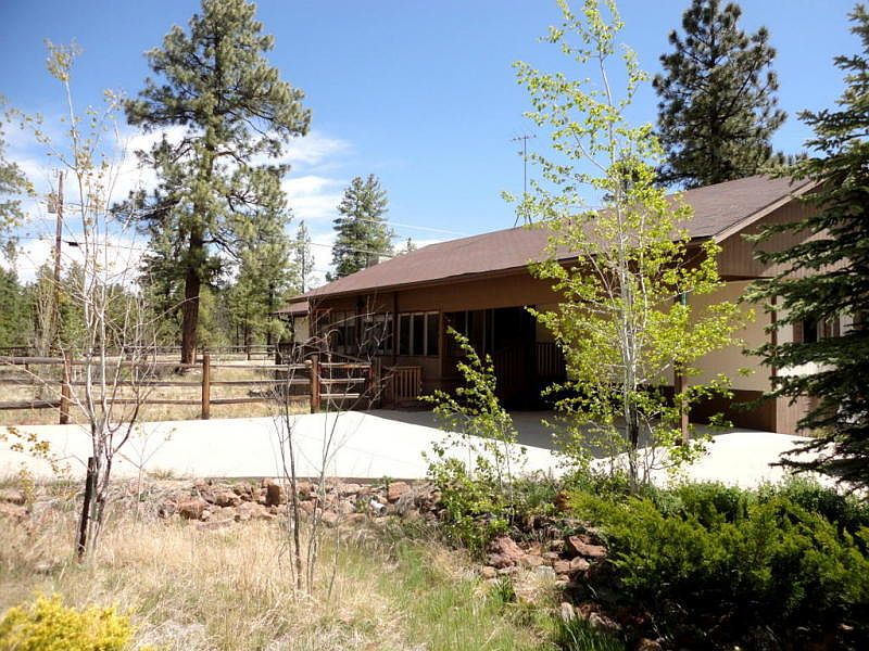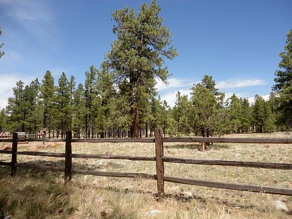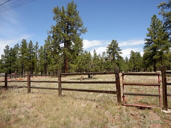 ON THE NATIONAL FOREST!!! Split plan; 2 bedrooms; 1 bath on one end and Master Suite on the other end with a full bath garden tub and shower; a bonus room with large window looking onto forest. Sliders take out to a covered deck from which to quietly and privately enjoy the Coconino National Forest. This unit is 1440 sq ft plus approx. 100 sq ft more added on. The Living Room is huge with a built-in library and a propane free-standing glass front stove which adds to the ambiance. The cabinets in the kitchen will take a while to fill; along with a built-in table and tons of counter space; dining area with large hutch; FAP heat; screened in deck facing the forest road. A corner lot which is fenced and located on the forest. Full Ramada over entire unit; concrete half circle driveway.