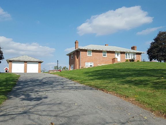 2.61 Acres, 3 car garage, All Brick rancher in the country. Well maintained, move in ready with 200 amp electric service, 2 Fireplaces one of which has a wood pellet stove that conveys. Main level offers large updated eat-in kitchen, living room with fire place, master bedroom with full bath, 2 additional bedrooms and a hall full bath. Lower level offers a walk-out basement, family room with fire place ( wood burning pellet stove) spacious laundry room, utility room, and 1 car garage. There is a 2 car detached garage. Paved driveway leads to both garages. Kitchen cabinets are soft close :-)