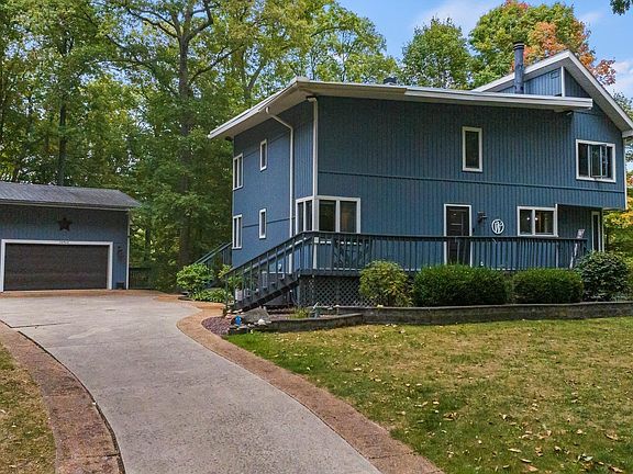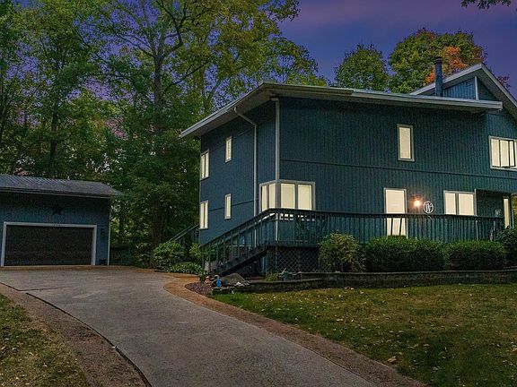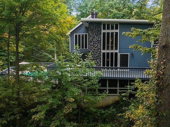 This gorgeous 5-bedroom 3 full bath home boasts a mountain top view with a wraparound deck, heated inground pool, HEATED DRIVEWAY and oversized 2 car detached garage in Northwest Fort Wayne! Updates include: New roof in 2022, fresh paint, new carpet in all bedrooms and a new vanity in second floor bathroom. The main floor boasts a large living room with vaulted ceilings, original hardwood floors, custom timber work and floor to ceiling windows and fireplace. The oversized kitchen is complete with ample cabinet space and a spacious island opening up to the dining space. Two bedrooms and a full bath finish off the main floor. Upstairs you will find a large primary bedroom complete with a fireplace and an attached nook with another fireplace as well as a large walk-in closet! A full bath and bedroom also complete the second floor. The walkout basement is an entertainer's dream! Complete with a large bar with built in taps, a large display case and a large entertaining space with a fireplace! The basement opens up to the large 3 season room which connects to the pool deck. You will also find the laundry room, a full bath and additional bedroom in the basement. As you walk out to the back yard oasis, you will be greeted by a sprawling heated inground pool, an oversized pool deck and wet bar all with complete privacy and one of the best views in Fort Wayne! The oversized detached garage provides a possible additional living space complete with a brand-new electrical box and some new wiring. Nestled in the heart of Northwest Fort Wayne, this home is a must see!
