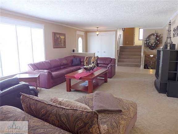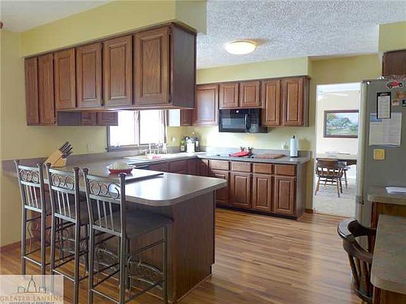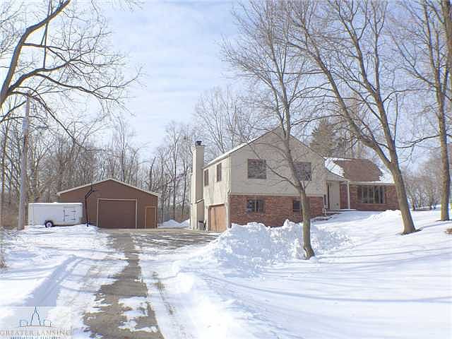 Grand Ledge schools. 4.93 acres. 4 BR 2.5 bath, quad level home with 3010 fin sq ft. Attached 2C garage with door opener. 30x40 outbuilding with wood stove and electricity. Dog run and kennel. Immaculate condition. All four bedrooms on upper floor with two full baths. Kitchen, dining room, breakfast nook, and living room and foyer on main level. LL features access to garage, family room with wood burning fireplace and laundry room and access to patio and deck area. Basement area features, storage, mechanical room, workout room and rec room. Wooded lot, groomed trails, home sits off the road, private and secluded. A MUST for the outdoors person or hobbyist. 24 hour notice is preferred. Well and septic, natural gas heating. Feels like COUNTRY, minutes from the highway, airport, and West Side of Lansing shopping.