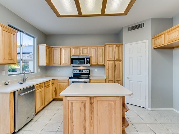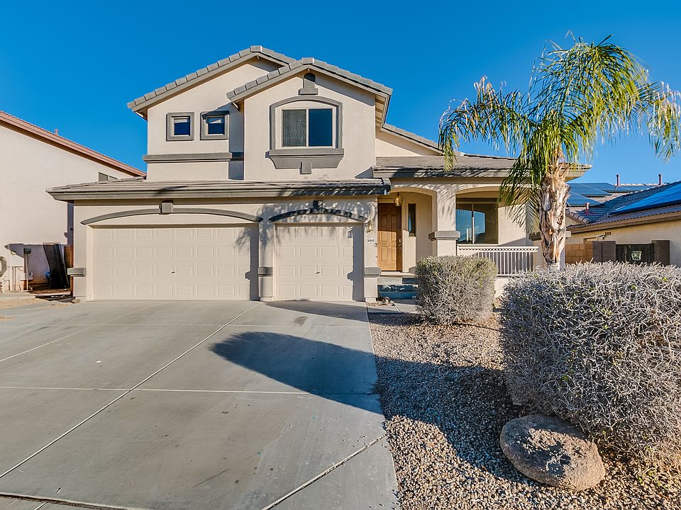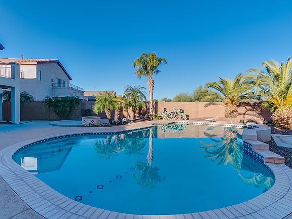 Come splash in the pool with a new deck finish or relax beside the firepit at this two-story Surprise home! Upon entering you will note fresh interior paint and new carpet! The eat-in kitchen offers tile flooring, a built-in desk, and a pantry. Upstairs, you'll find a Master bedroom with a walk-in closet, a balcony, and a full ensuite bathroom. Perks include a 3-car garage and fresh exterior paint! All Opendoor homes come with a 30-day satisfaction guarantee. Terms and conditions apply. Instantly access and tour this home from Mon-Sun, 6am-9pm. Follow the keyless entry instructions posted on the door.