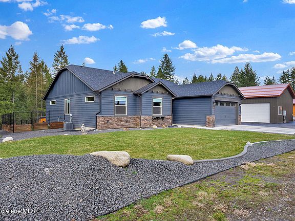 Are you looking for acreage, a shop, a place to build an ADU that is close to the water and has that little something special to call your own? Look no further. Offered is a custom built Hayden Home with all of the top builder options and further upgrades. This property sits on 2.28 acres with a 30x40 shop and 400 amp separate services to the home and shop. Added is a 12 x 30 lean to for storage. This home is 3 bedroom with 2 full baths and an office. Outside you'll have a covered patio, room for a gun range, and by county ordinance an ADU that can be built beyond what is currently on the property. The garage has a mini-split with air conditioning and heating. Downtown Coeur d'Alene is just a short drive away, and the Spokane Airport is just a short drive to the west. This may be the home you've been looking for. There's no waiting for well drillers, permitting, etc. It's move-in ready featuring all the top builder upgrades offered through Hayden Homes. Book your viewing today.