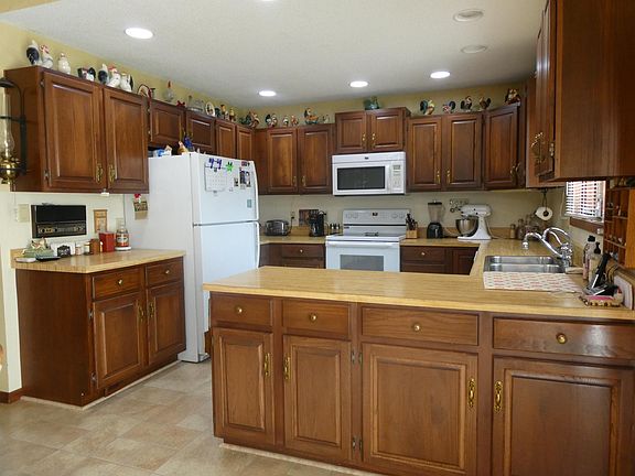 Well-kept 4 bedroom, 2 bath, multi-level home on the edge of town! Gorgeous backyard oasis! Double attached garage. You will enter into a nice foyer. Also on this level is the open kitchen and dining area. The kitchen has a lot of cabinets and countertop space. All the kitchen appliances stay. The sliding doors to the patio are in the dining room. The upper level has a spacious living room space with great natural light. You will also find 2 bedrooms, with beautiful views of the fields across the street, and a Jack & Jill bath has double sinks. On the lower level will be a comfortable family room with a fireplace with field stone surround, and 2 more bedrooms. The 3/4ths bath also holds the laundry. The beer room has a fun 70’s electric fireplace. You will also find a workshop. All windows except the living room have been replaced. There is great landscaping throughout the yard. Enjoy the peaceful views from the front deck. The patio is semi secluded with views of beautiful flowers.
