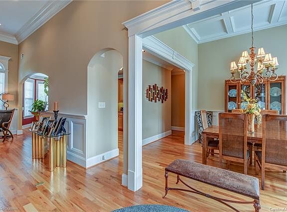 This meticulously maintained, move in ready 1 story home w/ FROG was previously a builder's show home! Details abound thru-out including hardwoods, extensive crown moldings, ceilings features, coffered ceilings, columns & more. The 2 story family room is open to the kitchen featuring granite, 42" cabinets, cooktop, dual wall ovens, breakfast bar & breakfast room. Split bedroom plan has the Owner's retreat away from two other bedrooms. Triple tray ceiling with rope lighting graces the Owner's bedroom. Oversize jetted tub & walk in tiled shower. Laundry rm has cabinets & utility sink. Wrought iron spindles grace the oak treads going upstairs where you will find a bonus/media room above the garage + full bathroom. Blinds thru-out. Walk in attic space provides add'l storage space. This corner lot is fenced in & has a large deck + professional landscaping.Seven Oaks in conveniently located close to shopping, restaurants, I-77 & downtown Rock Hill - yet tucked away from the hustle & bustle!
