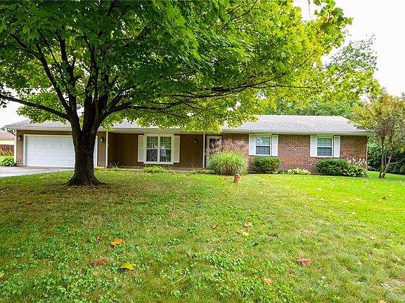 Great brick and cedar ranch on large lot with country feel and huge 58' X 24' garage. Large living room, spacious eat-in kitchen with walk-in pantry, master suite has walk-in closet and full bath, 2 more good sized bedrooms and full hallway bath. Great covered patio, accessed from kitchen and side garage door that overlooks mature landscape, deck, above ground pool, creek, and shed. Seller added onto original garage, extending to back of property with another door, easily fitting 4+ cars, boat, toys, or great for workshop. Garage attic is floored with pull-down ladder entry. Updates include roof, furnace, AC, some flooring, city water, and more. Easy access to main routes, town and I75!