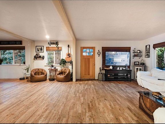 Great Country Home on Almost 3/4 Acre Corner Lot - with recently renovated detached additional living space. Feel of the Country with convenience of the city nearby! Right up the road from famous Rogue River. This single-story home has a nice open floor plan, solid wood floors, wood burning fireplace and a Fun gorgeous kitchen., with incredible shelving. Custom painted, colorful with a matching dining room included. Recently renovated bathroom with some custom tile work and established room for entertainment. The back deck is neat with a fenced area for animals or children. Limitless gardening opportunities here - grow anything you want with plenty of space and FREE water that is GrandFathered in. Behind home is a detached garage with connected 500 square feet of updated gorgeous space with a woodburning stove & mini split as well for guests or a rental. Add a bathroom and kitchen for a Fantastic AIR BNB opportunity- or turn into a private rental ! LOW Taxes. Diamond in the rough !