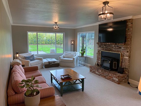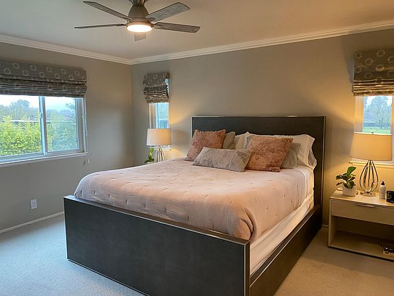 NOTE: PROPERTY IS NOT A YEARLY RENTAL. PROPERTY MAY ONLY BE RENTED OUT FURNISHED & ON A MONTH-TO-MONTH BASIS OR LESS THAN 31 DAYS. Recently renovated family-friendly home in a beautiful setting, conveniently located just minutes from the historic Sonoma Square. Tucked into a picturesque and quiet rural neighborhood, the family-friendly home boasts stunning views of surrounding vineyards, Felder Creek, and the Sonoma hills. The perfect place for gathering with family and friends to enjoy a memorable wine-country getaway. This 4 bedroom 3 full bath home's 2,800 sq. ft. of spacious living includes abundant natural light with picture window views perfect for relaxed gatherings. The home is equipped with SONOS speakers throughout. The formal living room is the ideal space to entertain. The formal dining room seats 10 and overlooks the Grace Benoist Ranch vineyard. The large family room is designed for fun and relaxation. Included is a large-screen TV - great for movie viewing with a crowd, a full-sized wood-burning fireplace, ample board games, puzzles, and a full-size PacMan machine. The hot tub purchased in 2023 is perfect for enjoying a glass of wine while gazing at the sunset or soaking under the stars. The updated kitchen includes a full-sized dining area with an adjoining private deck just right for enjoying morning coffee alfresco. Modern and comfortable bedrooms include a large primary suite with a dressing room and ensuite bathroom with Speakman dual head shower and Toto Neorest. The three additional upstairs guest bedrooms feature architectural ceiling fans, full-length mirrors, custom window treatments, large closets, and Lutron Caseta smart lighting system. As well as the four upstairs bedrooms, an additional "den" off the family room comfortably accommodates 2 guests. FULLY EQUIPPED KITCHEN + Breville Nespresso Vertuo coffee pod machine + basic cooking essentials: seasonings, condiments, oil, vinegar, organic sugar, coffee, tea, etc + high-powered blender + microwave + full-sized fridge + range and oven + dishwasher + toaster + BBQ grill (charcoal) BEDROOMS AND BATHROOMS Bedroom 1 - Primary: King size bed, ensuite bathroom Bedroom 2: Queen size bed, access to hallway bathroom with dual vanities and shower over tub Bedroom 3: Queen size bed, access to hallway bathroom with dual vanities and shower over tub Bedroom 4: Two twin beds, shared access to hall bathroom with dual vanities and shower over tub Den: Queen size bed with adjacent bathroom with shower FEATURES AND AMENITIES Fully-equipped kitchen Purified Water Filtration System throughout Tesla roof and Battery system 2 Dining areas with seating for 6 & 10 65" flat screen television with Bose sound bar Starlink Wi-Fi SONOS Wood Burning Fireplace with heating system Heating system Washer/Dryer Iron/Ironing board 3,000 sf home Children's high chair, stool, toys and games Air conditioning and bedroom ceiling fans OUTDOOR AMENITIES Sun Deck Trellised Patio with seating for 12 Hot tub - heating included Several Alfresco dining areas Barbecue Ping Pong Table Giant Connect 4 Board Cornhole Set Lounge Chairs Mountain ridge views Felder Creek Parking in the driveway for 4 cars Hammock Children's swings TESLA Battery Wall in the case of a power outage STAFF & SERVICES Extra Cost (advance notice may be required): Home pre-stocking Chef services Guest access Guests will get an access code to use while staying at the property. Other things to note Until late spring 2023, the house is only available for a minimum of 31 days. Cleaning fee represents 2 cleanings. If renting for more than 30 days, we require a cleaning to be done every two weeks at a cost of $250 per cleaning. NOTE: PROPERTY IS NOT A YEARLY RENTAL. PROPERTY MAY ONLY BE RENTED OUT FURNISHED & ON A MONTH-TO-MONTH BASIS OR LESS THAN 31 DAYS. No smoking in the house or on the decking area. Parking is available for up to 4 cars. Jan - Mar = $6,995