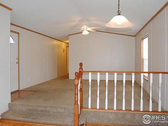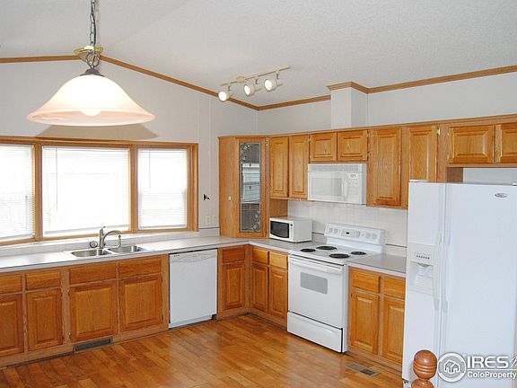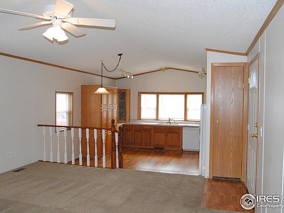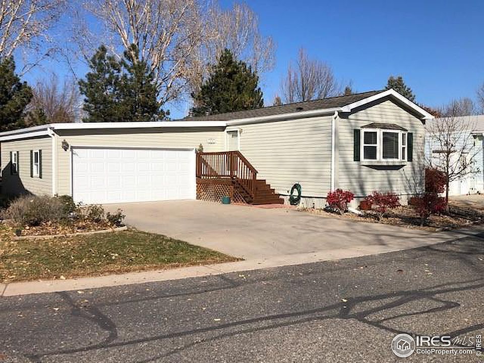 Professionally cleaned home features open floor plan, vaulted ceilings, 2 large bedroom, 2 full baths. The many updates include new roof, exterior painting and water heater new this year, double pane window that open in for easy cleaning. Large kitchen with lots of cabinets and southern exposure for wonderful sunny rooms. Primary bedroom has fabulous 5pc en suite master bathroom complete w/huge soaker tub, separate shower, double vanity & skylight. Oversized 2 car garage (26 x 22=572sf) insulated & drywall. Enjoy your deck that backs to park (no neighbors behind). Sunset park is a desirable 55+ community with well kept grounds and common areas. Located close to all of your shopping and dining needs. Lot rents Range from $800 - $1200 in Loveland/Ft. Collins area, Sunset park is $1,056. Chattel mortgage or cash. (Only certain lender loan on Mfg homes in parks - I can give you a list of lenders). Buyer/agent responsible for verifying info.