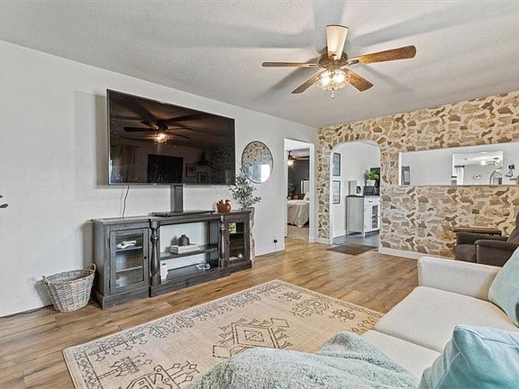 Adorable 3 bedroom ranch on full acre, surrounded by trees and NO HOA. Newer roof (approx. 4yrs old). Country living with plenty of trees and space to spread out. New wood floors in main living area. All appliances will convey and the 5 windows in the front of the home will be replaced prior to closing. The garage is oversized and makes a great workshop with a wood burning stove and expansive windows for natural light. In addition, the shed in the back is available for more storage. Located on blacktop and 5 minutes from I35, you don't want to miss this one. Seller offering a 1 year home warranty at closing ($450 value). Such a great find! Schedule a tour today and make this your home!