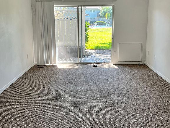 Contemporary fixturesSoft carpetingOpen floor planWelcoming living spaceClean neutral paletteNatural lightPrivate covered patio