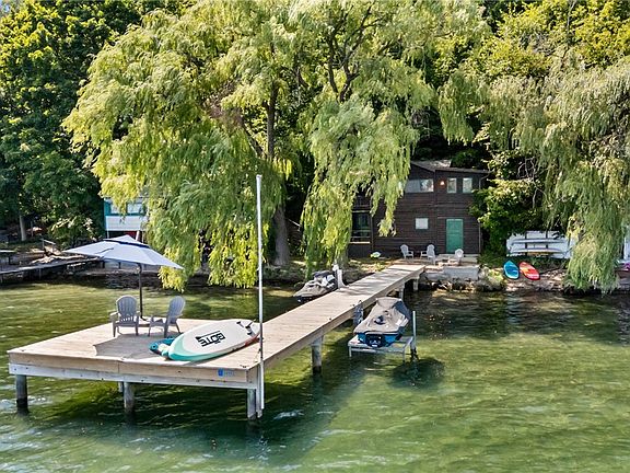 Welcome to this one-of-a-kind lakefront retreat on Seneca Lake’s West side. Offering 50 feet of frontage and two separate dwellings, this property is the perfect blend of charm, privacy, and potential. The beautifully renovated main cottage is tucked up on the hillside, nestled in the woods for a peaceful setting. It features 2 bedrooms, a cozy open living/kitchen layout, full bath, basement storage, and numerous updates including new siding, roof, retaining walls, planter beds, and entry stairs. Step out onto the spacious deck to take in breathtaking sunrises over the lake. Newer mechanicals include a forced-air furnace (AC-ready) and hot water tank for year-round comfort. Down by the shoreline, the large log-sided bunkhouse/cottage offers incredible opportunity. With 4 bedrooms, full electric, a compost toilet, lower-level storage, and sweeping lake views, it’s ideal for guests, entertaining, or future upgrades. Outdoor living is maximized with new lakeside stairs (2020), a large dock (2022), and multiple spaces to relax by the water. Property is sold furnished (excluding artwork and watercraft) and includes a new 1200-gallon holding tank with public water delivery. Whether you’re seeking a personal vacation getaway, a family retreat, or an investment opportunity, this property is a rare find on Seneca Lake. It is conveniently located near wineries, breweries, and all the Finger Lakes have to offer. Don’t miss this outstanding value on Seneca Lake—schedule your visit today!