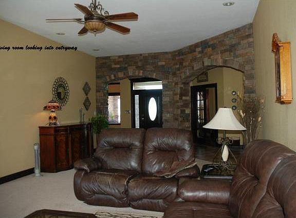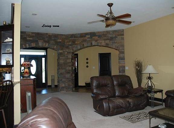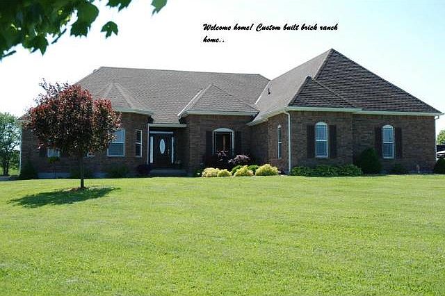 Gorgeous custom all brick ranch home on 7.20 acres! You will fall in love as you enter in the front door to the stone pillars that greet you. Living room with fireplace leads to the kitchen that the cook will love! All the bells and whistles.. Granite countertops, stone backsplash and tile floors. Kitchen leads out to the back covered deck that overlooks your property. Office just off the front of the home. Master suite with amazing walk in closet! Home has formal dining room as well. So much space here...