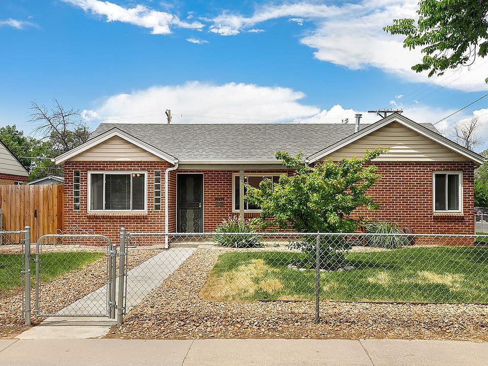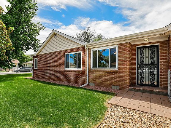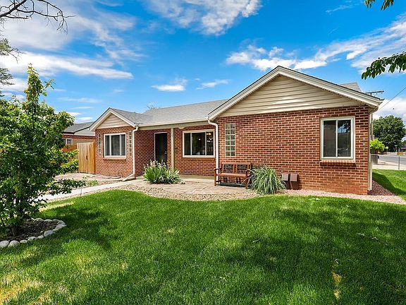 Beautifully updated brick ranch style home on a large corner lot. Sprawling layout with 4 bedrooms and brilliant natural light. Lovely dark hardwood floors and new carpet. Spacious kitchen features a large breakfast bar, 42" cabinets, ample cabinet space, gas range, pantry and vegetable sink. Bright sunroom adds great additional living space and character to this home. The sunroom opens to a large backyard and deck, perfect for entertaining. Gorgeous bathroom with double sinks and custom tiled shower. Updated lighting. Traditional wood burning fireplace. Fresh interior paint. Attached oversized 2 car garage with built-in shelving and work bench. Conveniently located with walkability to shopping, restaurants and entertainment. Minutes to the University of Colorado Hospital Anschutz Campus. Easy access to I-225 and I-70.