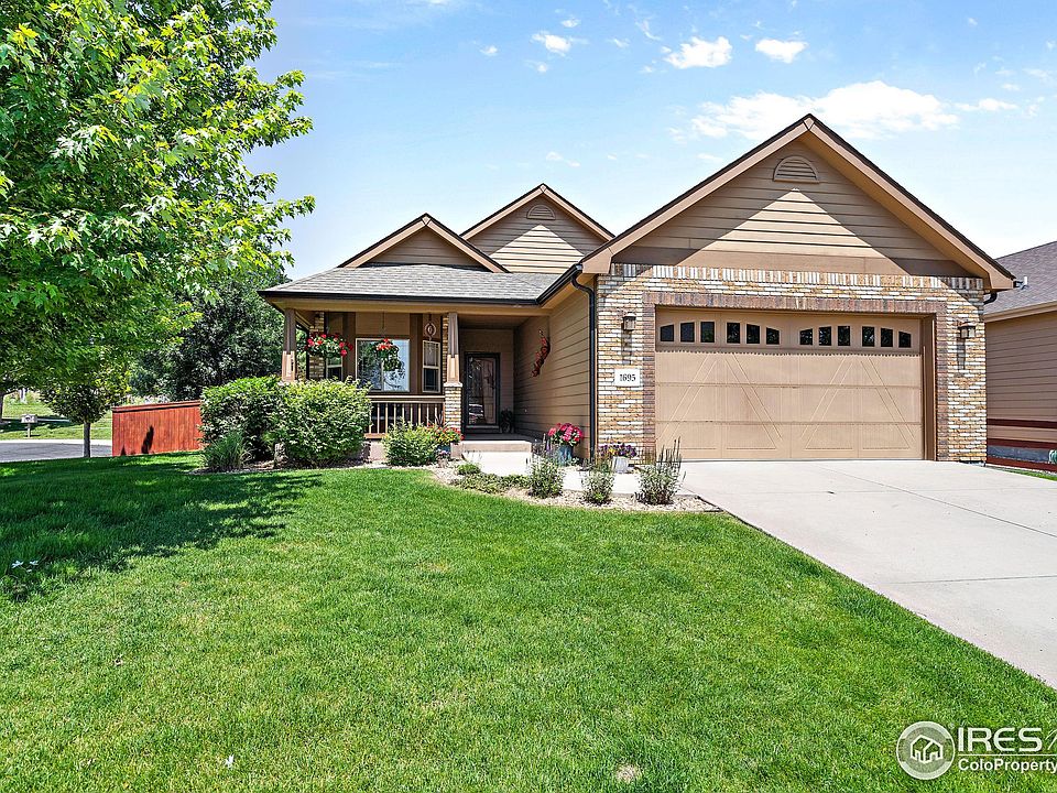 LOCATION, LOCATION, LOCATION!!! Ensconced in a quiet cul-de-sac in Loveland's esteemed Kendall Brook, this exceptional ranch-style home sits on a premier lot that backs to Loveland's amazing 32-mile paved trail system and is surrounded by the community's natural open spaces. A cheery covered front porch is a welcoming prelude to the gorgeous interior. Wood floors, smart floor plan, knotty alder woodwork, dream kitchen with pantry, and a retreat-like primary suite make main floor living a dream. Enjoy a cozy living room fireplace, walls of windows & soaring ceilings, and stunning views of nature. Downstairs, a finished (permitted) basement has a great floor plan with a bedroom, bathroom, large rec room, and tons of storage in the unfinished area.. Don't overlook that south-facing garage! The fully fenced backyard has a covered back patio plus a remote-operated electric Sunsetter shade to maintain your comfort while relaxing outside. Kendall Brook is renowned for beautiful homes, lush landscapes, multiple neighborhood parks, natural areas, and easy access to the expansive walking/biking trails. This is a truly remarkable home that offers a Colorado lifestyle experience you will love. No Metro Tax!