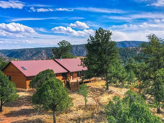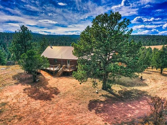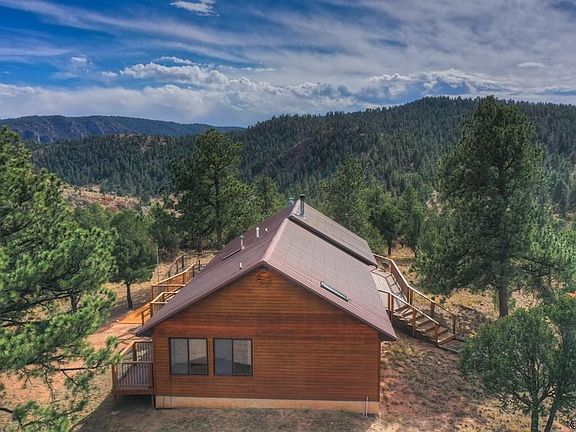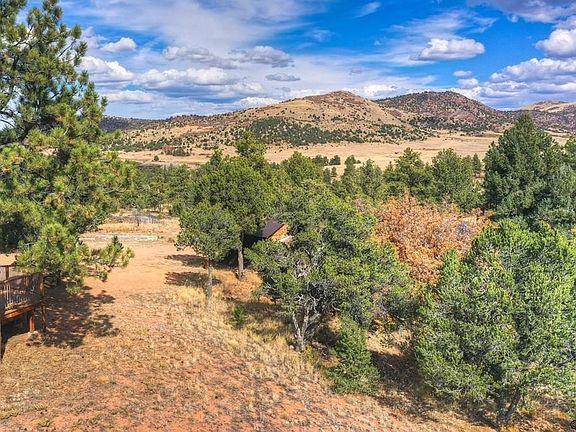 Unbelievable find! Incredibly special 35-acre mountain paradise at Deer Haven! Only 30 minutes from Canon City and less than a mile from pavement down a private, gated driveway, you will find this 1848 sq ft 3 bed/2 bath cabin-style ranch home nestled in the trees among the high, rolling hills at the heavenly elevation of 7900 ft. The property includes two lots, (31.65 acre lot with house, and 3.35 acre lot across the road) with easy, direct access to thousands of acres of BLM land surrounding it! Completely off-grid with solar panels, batteries, and two 500 gal propane tanks included, the home is equipped with all the comforts needed for year-round living. Built in 1994 with rare quality and craftsmanship and immaculately maintained by its original owner over the past 30 years. Large windows, skylight, and lofted wood plank ceilings throughout add a wonderful sense of space and expanded views from all rooms. Open concept layout with great room and wood-burning stove/fireplace. Apex of the home features a wall of windows leading out toward the expansive wrap-around deck with large ramp for accessibility. Excellent well permitted as Domestic and Stock. Also included: propane fridge, electric fridge, propane freezer, propane range/oven. Outbuildings include sheds, barn, and modular unit for storage with attached carport. Raised garden beds ready for next year's plantings! This is an absolute gem of a property. If you are its next lucky owner, please hurry! Move-in ready.
