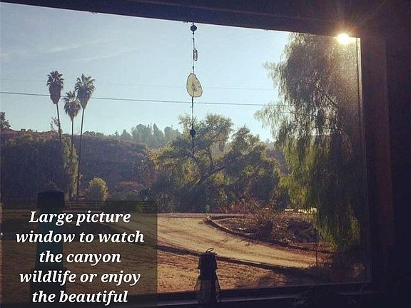 Welcome home to this 2-bedroom, 1 bathroom, 3.65 acres horse property. This ranch style home is nestled amongst trees in beautiful Mockingbird Canyon. Enjoy the surrounding, wildlife, seasonal creek and stunning sunsets from the little red brick porch. Newer carpet/vinyl flooring. Newer Kitchen counters, sink, faucet, vintage electric stove/oven. Newer bathroom tub/shower, vanity and lights. Ceiling fans, LED lights, rustic fireplace and gorgeous oak walls in living room & kitchen. Laundry hookups in enclosed patio. There is another home that is a manufactured home 2 bedrooms 2 bathrooms, approximately 1440 square footage. RV Parking access.