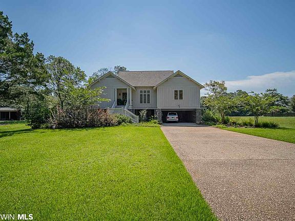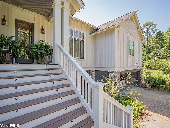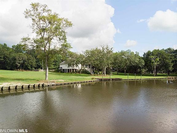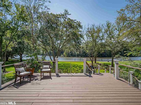 A distinctly Southern lifestyle awaits you at this enchanting French Country home on the banks of Fish River. This 4-bedroom estate gifts buyers with a truly one-of-a-kind property filled with artistic details and captivating views featuring 72’ private water frontage and an additional 100' available for purchase. From the repurposed Georgian Pine planking to the stunning open kitchen, this property is an entertainer’s dream. The Southern Living featured home offers a master suite and guest bedroom downstairs and two spacious bedrooms with ensuites upstairs. The main level of the home delights with two living areas, two dining spaces, a large sewing/crafts room, and a screened-in porch ideal for entertaining. While the interior is exceptional, the outdoor space is simply stunning! Multiple levels of decking provide a grand appearance, while two fire pits, boat dock, and a paver adorned courtyard create an idyllic locale for waterfront weddings, soirees and family gatherings. The blend of heritage and modern detailing make this a property you will want to call home! Some minor hurricane Sally interior damage to sheetrock, paint, and flooring. Sold AS-IS. Photos are pre-Sally