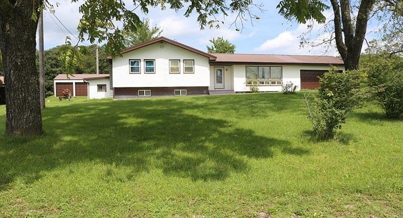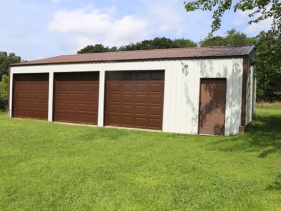 Missouri Ozarks home with finished walkout basement for sale in Houston, Missouri. The home offers 4 bedroom and 2.5 bathrooms, family room, and oak cabinets and Corian countertops in the kitchen. There's an electric fireplace in the home and acreage for livestock on this Texas County property. The home boasts a 2 car attached garage, 3 car detached garage, and a 2 stall equipment barn for ample storage and workshops. This property has lush pasture and two spring fed ponds. The equipment barn and 3 car detached garage are ideal for workshops, storage, and additional vehicle parking. The perimeter fencing has steel pipe corner posts and the property.