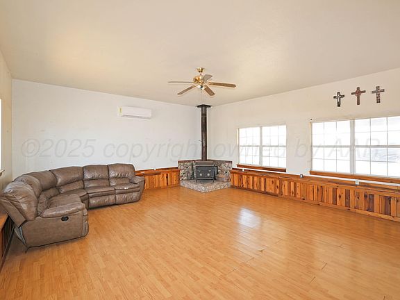 This unique property was once an Air Force barracks and has been thoughtfully converted into a cozy 2-bedroom, 2-bathroom home. Situated on 1.52 acres, it offers both character and functionality. The spacious den, formerly the garage, features a wood-burning stove—perfect for gatherings or quiet evenings. A 2-car garage has also been added for convenience. Outside, the property includes a well house and a 4-stall barn, making it ideal for those seeking extra storage, hobby space, or room for animals.