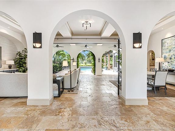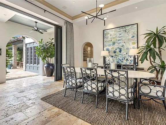 Stunning, two-story residence in luxurious Cortile in Mediterra with golf membership available. This spectacular property has unsurpassed lake and golf course views with Southern exposure. The outstanding estate features expansive outdoor living space complete with full outdoor kitchen, fireplace and resort-style pool and spa. Pocketing sliding doors allow for graceful flow from the exterior to the interior living area, which showcases high-end decor and finishes throughout, soaring ceilings, plentiful windows providing an abundance of natural light. Entertaining is a breeze with a chef's kitchen featuring top of the line appliances and walk-in pantry. The sought after residence comes complete with golf membership eligibility and is located in the award-winning community of Mediterra, featuring a private club with two world-class Tom Fazio golf courses, a private beach club, tennis, restaurant and just a short distance to Southwest Florida gorgeous white sand beaches.