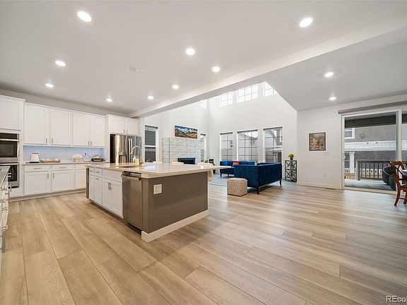 Welcome home, this beauty can be yours in 30 days, quick, closing and possession available on this resale home. This is truly a beauty, immaculate, no pets, like new, lovingly cared for and meticulously maintained. This wonderful home has five bedrooms and four bathrooms, four bedrooms on the upper level with three bathrooms, one bedroom on the main floor with bathroom adjacent. The elegant entry invites you into this bright, warm and welcoming home with luxurious finishes and quality upgrades throughout. The kitchen, with Profile appliances which are all included, is truly the heart of the home and is open to the two-story, family room with tiled fireplace, and the dining area, which has access to the beautiful covered patio, overlooking the fully landscaped yard with privacy fence. The upper level has the luxurious and expansive primary suite with upgraded Aqua guard flooring, elegant bathroom and spacious walk-in closet. There are three additional bedrooms on the upper left, two of which share a Jack and Jill full bath, and the third bedroom has its own private bath and walk-in closet. The laundry room is conveniently located on the upper level, as well as the bright loft which overlooks the great room . This home is ideal for work from home professionals and multi-generational living. Located across from the wonderful park and open space with trails and hiking, you can relax and unwind in your new home.