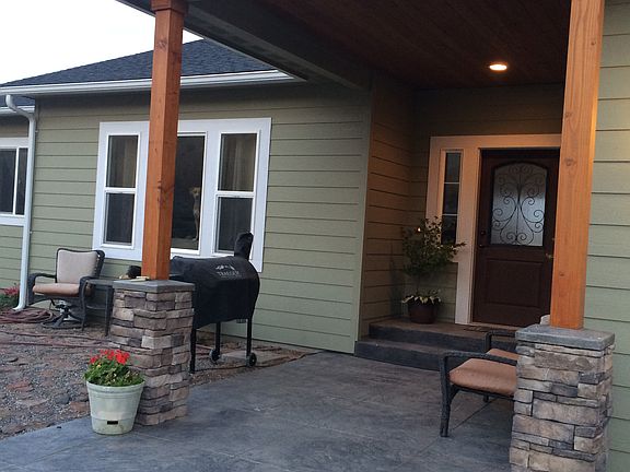 Quiet and peaceful country setting on 40 open acres yet only 3 miles from town. Open concept rambler with fantastic sunset views from the back patio. Hickory hardwood flooring, granite in kitchen and baths, 9 foot ceilings throughout with vaulted living room and kitchen. Kitchen also features walk-in pantry, glass tile backsplash, gas stovetop, double wall ovens, large island with seating perfect for hosting events and holidays. Gas fireplace with stone surround, double doors off entry to roomy office. Large master bedroom separated from others for privacy, with spacious walk-in closet, generous size master bath has deep soaking tub and a large tiled walk-in shower. Triple car attached garage can accommodate full size pickup and additional car with ease. Plus 36X48 shop ready to customize for work or play. Big sloped yard with underground sprinklers, fenced kennel for the pups.