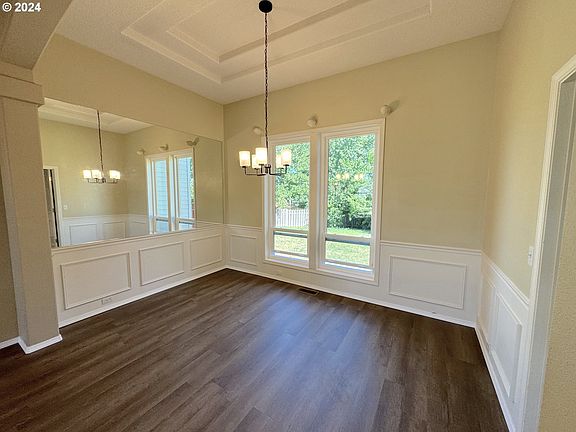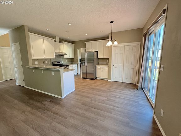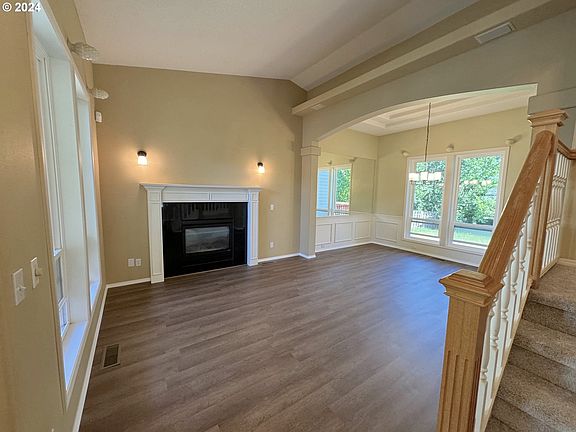 Stoller Farms 4 Bedroom, 3 bath home with 3 car garage! 2219 SF. Open floor plan, light & bright, engineered woods and vaults. Soaring two-story entry, adjacent to formal living room and formal dining room. The kitchen features stainless appliances, granite tops and engineered wood floors. Family room w/engineered wood floors with gas fireplace. Den/Bedroom downstairs with adjacent full bath. Primary bedroom suite features double doors, vaulted ceilings and adjoining room. Primary bath has soaking tub, separate shower, double sinks and walk-in closet. Very large fenced backyard with deck, Conveniently located with trails, parks, restaurants and shops nearby.