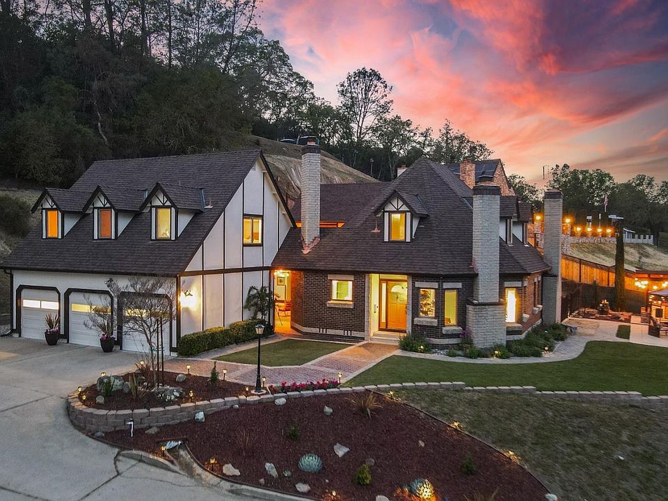 Embraced by stunning views! This 4,357 SqFt Magnificent Tudor Estate with separate In-Law Quarters encompasses a 1+ Acre parcel and perfectly elevated with breath-taking views of pristine hills, lakes, and reservoirs. Spacious 3,457 Sq Ft two-level main residence offers 3 Custom Fireplaces, waiting parlor, endless features with 3 bedrooms upstairs & 2 lower level including a spacious game room for entertaining. The 900+ Sq Ft Detached In-Law Quarters has 2 floors with full amenities, private garage, and separate entry. Unsurpassed views from every room in the Estate, designer courtyards and terrace platforms. Golf, Charter Schools, Elaborate Wineries, and Hiking Parks all in very close proximity!
