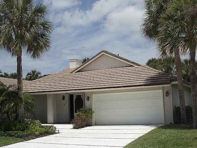 Lovely home on corner lot. Freshly painted inside. Popcorn ceiling removed, new carpet, new washer and dryer, large screened patio with garden view. Steps to community pool, near clubhouse, pool and tennis courts and fitness center. Golf cart included. Short drive to fine restaurants, shops and beaches.