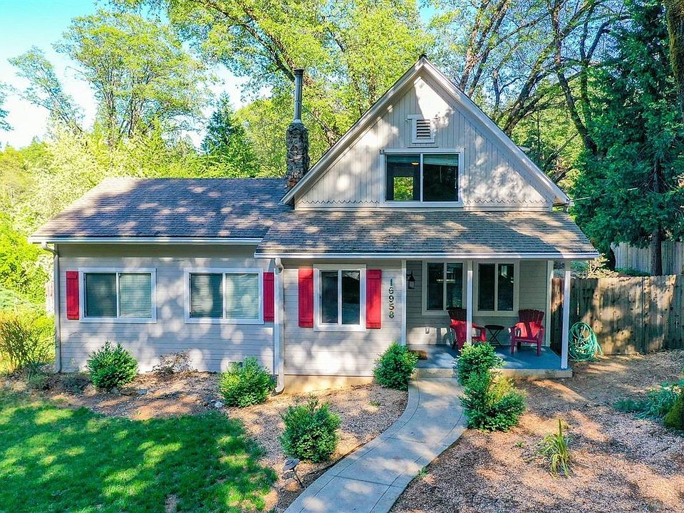 PRICE REDUCED on this Country cottage charmer! Remodeled in 2011, this home exudes character & comfort. Enter through the inviting front porch to discover the open floor plan perfect for entertaining. The airy & bright great room with a wood stove leads to the spacious kitchen featuring gorgeous granite countertops, a breakfast bar with pendant lights, & stainless-steel appliances and built-in fridge. The tasteful dining room overlooks the alluring back yard, fully fenced, complete with multiple seating areas, thoughtful landscaping, a canopy of towering oaks, & a play structure. Off the kitchen is a half bath & the spacious master suite with its walk-in closet & luxurious bathroom with granite countertops & travertine tiles. Upstairs you'll find two bedrooms, a full bathroom, & loft (home office area). Located close to Rollins Lake, Grass Valley, and I-80, this property is the perfect choice for year-round living or as a second home getaway.