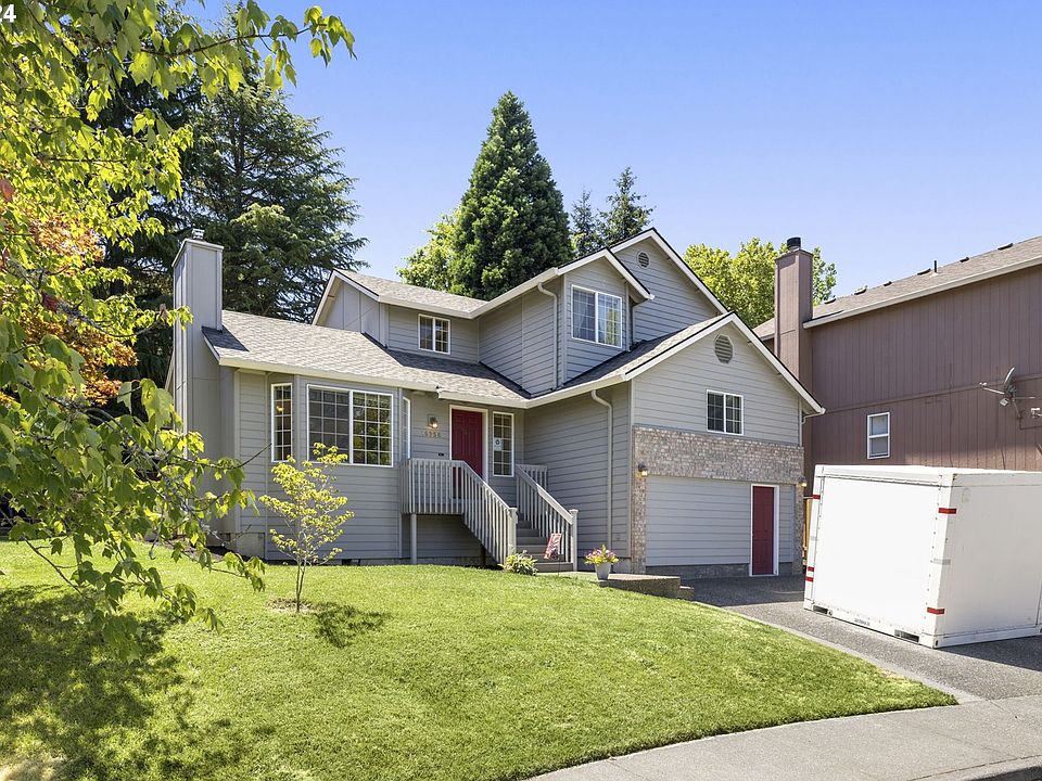 Charming Bethany 4 bedroom home on cul-de-sac. Welcoming entry to vaulted spacious living room with cozy gas fireplace. Kitchen with wood cabinets and luxury vinyl flooring, flows into the dining area and family room. Second floor, primary suite with walk-in closet, and private full bathroom. Two additional large bedrooms upstairs. Lovely backyard cement paver patio off family room, has partially fenced yard allowing for privacy. Garage converted with permits into 4th bedroom or office, utility area and storage. 4th bedroom has separate entrance. All houses on cul-de-sac face protected wetland and the Stoller Creek Greenway walking paths.