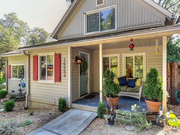 PRICE REDUCED on this Country cottage charmer! Remodeled in 2011, this home exudes character & comfort. Enter through the inviting front porch to discover the open floor plan perfect for entertaining. The airy & bright great room with a wood stove leads to the spacious kitchen featuring gorgeous granite countertops, a breakfast bar with pendant lights, & stainless-steel appliances and built-in fridge. The tasteful dining room overlooks the alluring back yard, fully fenced, complete with multiple seating areas, thoughtful landscaping, a canopy of towering oaks, & a play structure. Off the kitchen is a half bath & the spacious master suite with its walk-in closet & luxurious bathroom with granite countertops & travertine tiles. Upstairs you'll find two bedrooms, a full bathroom, & loft (home office area). Located close to Rollins Lake, Grass Valley, and I-80, this property is the perfect choice for year-round living or as a second home getaway.