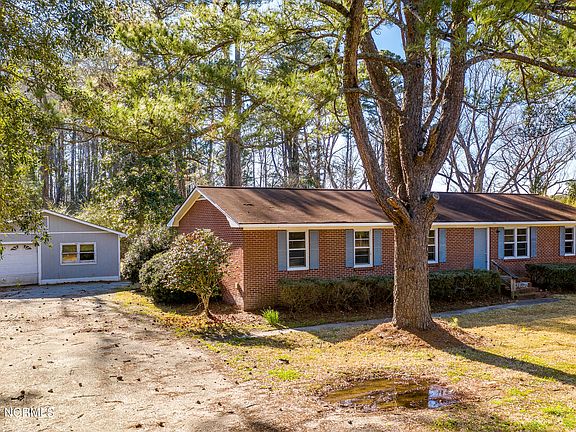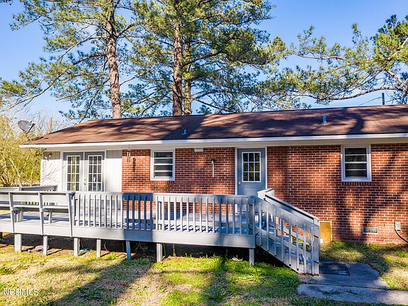 Three-bedroom/two-bathroom home located on a spacious lot in the country. This modest brick veneer home can be your primary residence or an investment opportunity. Home features a generous master bedroom with ensuite bath and walk-in closet; and an over-sized dining room with French doors leading to large deck that overlooks a very nice backyard with many mature trees. Great location with easy access to New Bern or Oriental.
