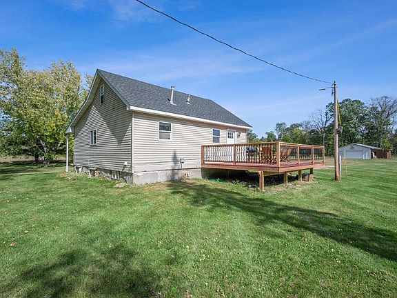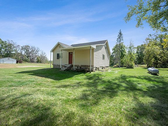 Stunning tree lined driveway leads you to your own private oasis! Located on 10 acres is this adorable 1.5 story home with 5 bedrooms and 1 bathroom. The new deck leads you right into the open floor plan of the main level! You are greeted with hardwood floors and modern colors throughout. This home has main level living with a large walk in closet in the master bedroom, 2 bedrooms in the upper level and 2 additional bedrooms in the lower level. Make sure to head to the beautiful heated and insulated pole shed that has room to store all your toys. It also has a cement floor and floor drain! There is an additional garage that is 24x40. Several updates include new roof, washer and dryer, stove in 2022 and deck in 2020.