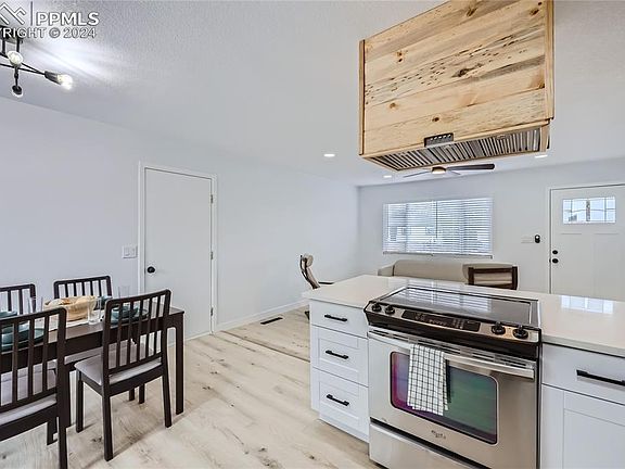 Beautiful upgrades, unbeatable price! Whether this is your starter home or your forever home, this gem is ready! Home ownership just became attainable with this affordable, well appointed ranch style home featuring 3 bedrooms and 1 bathroom. This entire home has been updated from the inside out! Turn key and move in ready! Starter home price with high end finishes and quality that will surpass expectations. No stone left unturned in the updating of this wonderful home in Colorado Springs. New, new, new...new paint throughout, new beautiful light wood LVP, new carpet, new blinds, new furnace, new front and rear landscaping, and more! Enjoy preparing meals in your bright, newly renovated kitchen with a stunning backsplash, attractive new white cabinetry with sleek black hardware and soft close feature, stainless steel appliances, and pristine stone countertops. Never miss a moment with family and friends with an open ranch layout. Spread out in your nearly endless backyard space that has been cleanly updated for minimal maintenance while still being able to enjoy a real lawn! Don't miss out on this well priced home that is only missing one thing...you!
