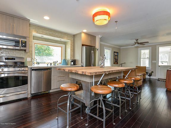 Turn Key Beach Cottage on quiet street w/ Master Bedroom Suite on 1st floor. Minutes to Beaches - nothing to do but unpack. From the Brazilian Walnut Hardwood floors, to the modern kitchen with its quartz countertops, SS appliances, and matching custom-built mobile center island, you will love entertaining in this super-stylish home! 1st floor MBR Suite features a walk-in-closet and en-suite bathroom. Master bath and 2nd floor full bath feature radiant heated tile floors. You will love the many custom details throughout this house: beverage fridge, Custom Crown molding and trim, pocket doors, high-end hardware and light fixtures. RE-purposed Mahogany front steps lead up to the sun-filled enclosed porch. Private back yard contains an outdoor shower and large patio for summer time enjoyment.