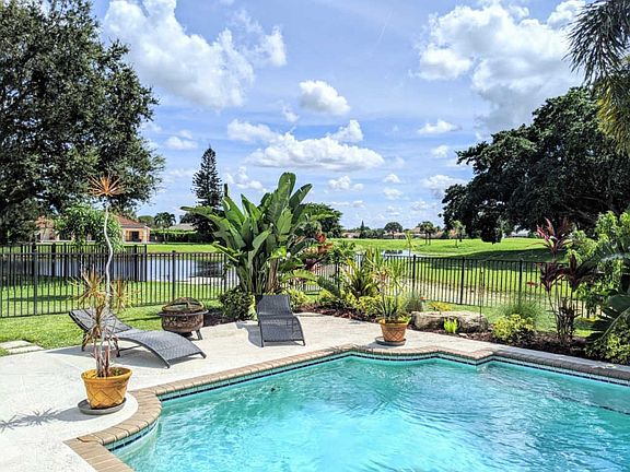 You'll love this resort-like home! Perfect get-away to enjoy whether here for Equestrian events or waiting for your next home to be available! Lovely 4 bdrm, 2.5 bath Pool home overlooking a lake & backing to quiet green space. Entertain with a game of pool or poolside with a fabulous set up (watch Football outdoors on TV under the covered Lanai or while basking in the pool on a lounging float!) The fabulous kitchen features 3 ovens, wine frig, and Keg-orator, plus a lovely family room w/ working fireplace that makes this space really fun and relaxing. Natural sunlight pours in every room, but can be closed off with privacy shades & shutters, including Accordion Storm Shutters for any fall leases! $4,500/mo (Oct-Nov) and $7,500/mo in season, plus utilities. Lawn & Pool service incl.